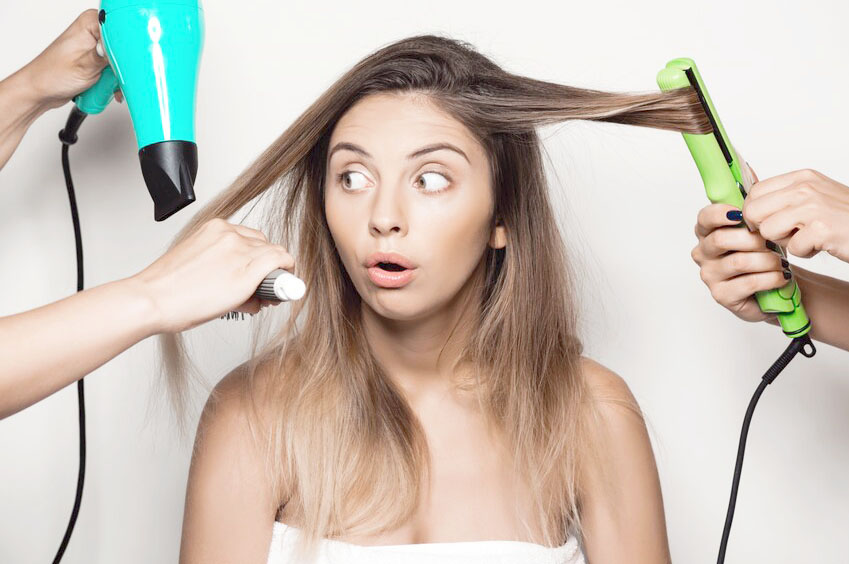 - časté žehlenie vlasov, pomôcka síce pomáha ľahšiemu stylingu a hotový účes býva efektný, ale aj v tomto prípade sa poškodzujú povrchové šupinky vlasov (treba aspoň používať prípravok na ochranu pred kontaktom s horúcim predmetom a vlasy žehliť pomalými dlhými ťahmi)
