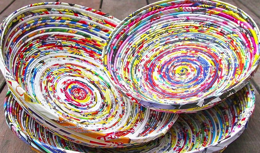 S vyradenými časopismi sa môžeme vyblázniť ešte kreatívnejšie. Z časopisu vytrhneme listy a vyberieme si farebne zaujímavejšiu stranu, ktorou list položíme na pracovnú plochu. Potom na jeden konček vnútornej strany položíme šikmo ceruzku a pomaly ju aj s papierom zakrúcame, pričom aplikujeme pred stočením na rovnú plochu vždy trochu lepu. Pred záverom celej procedúry, keď už máme na ceruzke natočenú takmer celú stránku z magazínu, natrieme lepom celý zostávajúci roh a rolku dotočíme. Po chvíli, keď lep zaschne, ceruzku vyberieme.