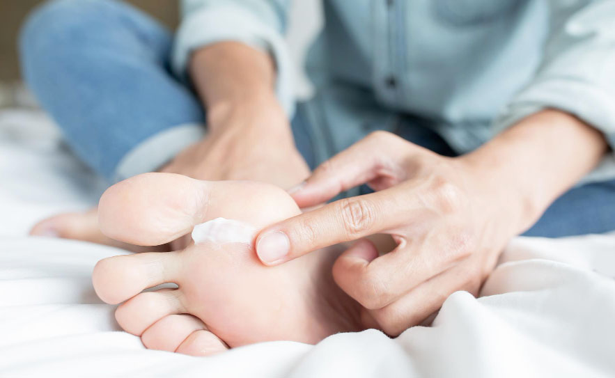 Aj kožu na nohách treba ošetrovať mastnými alebo hydratačnými krémami. Najvhodnejšie je používať špeciálnu kozmetiku pre diabetikov.