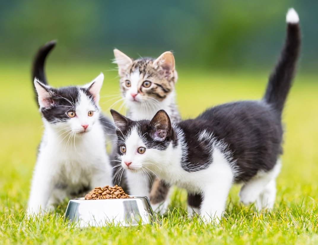 Dôležité je dbať aj na frekvenciu a veľkosť porcií. Najmenšie mačiatka majú malý žalúdok ale pre neustály pohyb veľkú spotrebu energie. Preto ich treba v prvých 6 mesiacoch kŕmiť 4 až 5-krát denne, po pol roku stačia dve až tri porcie. Čo sa týka zloženia, dve tretiny porcie má zastupovať mäso, ryby či vajcia a jednu tretinu zelenina alebo ovsené vločky.