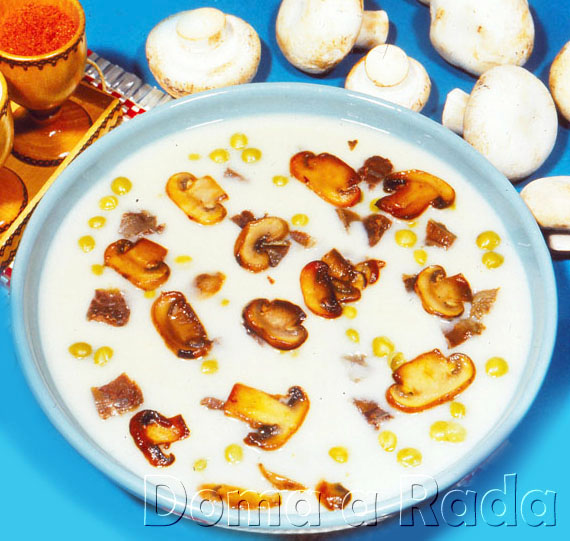 Jelenie mäso i kosti umyjeme a vložíme do osolenej vode, v ktorej ich varíme asi 2 hodiny. Potom vývar precedíme. S masla a múky si pripravíme bledšiu zápražku, ktorú zalejeme mliekom a napokon vývarom. Necháme zovrieť, aby sa zápražka dobre rozvarila. Potom do polievky pridáme šampiňóny udusené na masle, ocedený konzervovaný hrášok a na záver jelenie mäso pokrájané na malé kúsky.