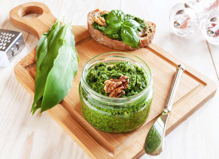 - listy použime na prípravu pesta na cestoviny z rozmixovaného medvedieho cesnaku, soli, korenia, píniových orieškov a olivového oleja