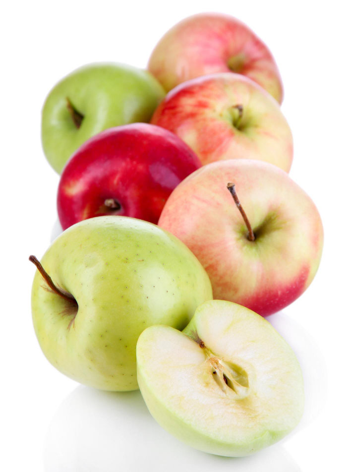 Granny Smith – typické zelené jablko s bielymi pehami na šupke s pevnou a šťavnatou dužinou