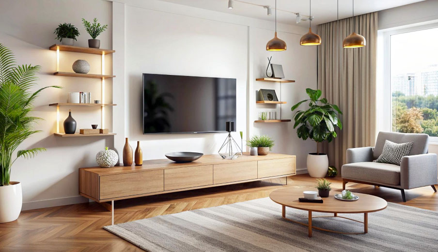TV STOLÍKY bývajú tiež súčasťou zostavy, ale môžu ich nahradiť nižšie komody.