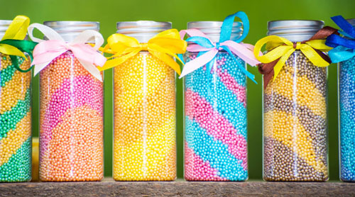 Zo soli si môžeme vyrobiť aj zaujímavé dekorácie. Potrebujeme niekoľko rôzne vysokých sklenených nádob, do ktorých nasypeme vrstvy rôznofarebnej i originál bielej soli. Soľ si zafarbíme pomocou kriedy rôznych farieb, ktorú nastrúhame a zmiešame so soľou.