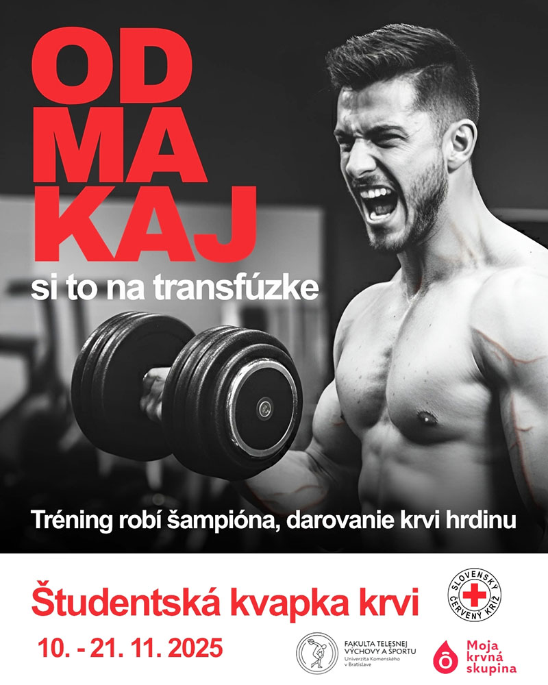Chceme tak prepojiť darovanie krvi s témou športu a zdravého životného štýlu. Aj preto sme na spoluprácu tentokrát oslovili Fakultu telesnej výchovy a športu Univerzity Komenského v Bratislave, kde kampaň odštartujeme mobilným odberom. Stane sa tak v pondelok 10. novembra 2025 dopoludnia. Médiá radi privítame o 10.00 hod, kedy budú k dispozícii aj zástupcovia jednotlivých organizátorov.