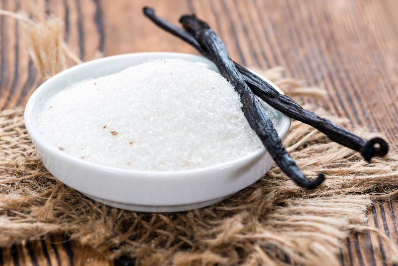 Potrebujeme kvalitné vanilkové struky, ktoré ostrým nožíkom pozdĺžne rozrežeme. Zvnútra vyškrabeme najcennejšiu časť - lepkavú dreň s čiernymi zrniečkami, tzv. vanilkový kaviár, a zamiešame ju do jemného kryštálového cukru v miske. No postačí aj rozrezané struky pokrájať na päť menších kúskov a do práškového cukru ich vložiť celé. Zmes neuzatvárame do nádoby, nechávame ju odokrytú. V priebehu týždňa máme k dispozícii aromatickú a sladkú súčasť receptov na koláče, krémy a pudingy. Rýchlejšie sa k nej dopracujeme pomocou mixéra, v ktorom cukor so strukmi zmixujeme. Ak niekomu zrniečka pripomínajúce kávu vizuálne prekážajú, mali by sme tento cukor pred použitím preosiať cez sitko. Jeden lusk dokáže zaromatizovať asi 500 až 800 g cukru.