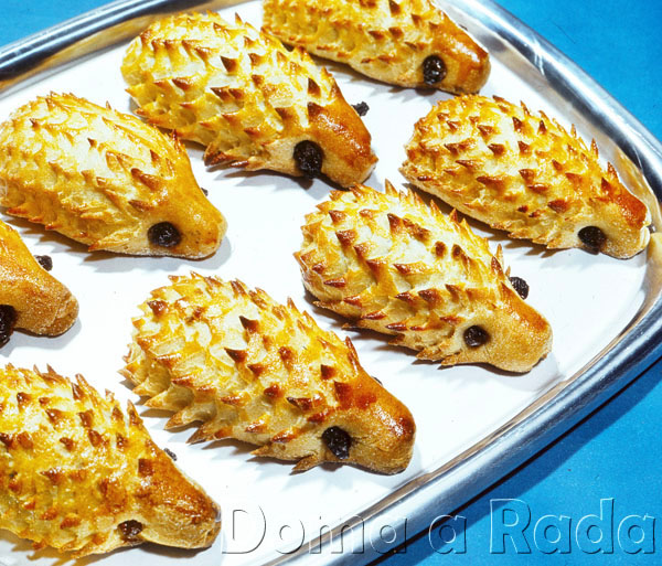 VARENIE - RECEPTY - MÚČNIKY A DEZERTY Múčnik v tvare ježa z kysnutého cesta plnený orechovou plnkou.