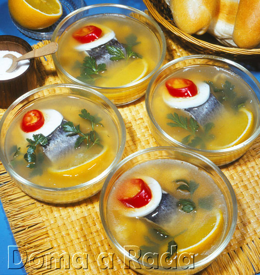 VARENIE - RECEPTY - STUDENÝ BUFET Majonézový šalát s kyslým sleďom a vajíčkom zaliaty aspikom je výborným pohostením alebo studenou večerou.